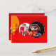Cute baby snake wearing Chinese cloths in cartoon style (model n°2) seems to light up with its little traditional lantern a round window for Your photo onto a red background. Design on postcard with the same baby snake + speech bubble with greeting in back of the card. Matching greeting card, sticker and more soon...
