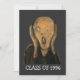 Humourous High School or College Reunion Invitation features Edvard Munch's infamous screaming creature along with the year of your graduating class. Punchline on the other side epitomizes in a funny way the feeling you have as you and all your classmates realize that time is passing and you've reached adulthood! Just enter your graduation year and your reunion year in the slots provided, along with all the other pertinent information. You might even want to combine your reunion with a Halloween costume party.