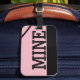 Humourous "Mine" pink and black luggage tag. For more design ideas and products please visit us on www.zazle.com/elaralunart.