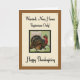 This humourous Thanksgiving Day Card will make everyone smile. It features a brown border, beige background, a framed drawing of a turkey looking at a calendar with a suitcase under it's arm. Card front reads "Wanted: New Home Vegetarians Only! Happy Thanksgiving." ©2013 Kreative Sentiments Cards by Sherry Harris