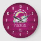 Humourous Unicorn Magical AF on Dark Red Pattern Large Clock