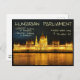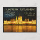 Nighttime photo of the Hungarian Parliament building with some stats.