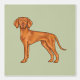 Destei's original cartoon illustration of a cute Hungarian Vizsla / Hungarian Pointer breed dog. The background colour is green, but it can be changed to any other colour as well, if so wished.