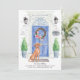 Announce your new address with our stylish announcement featuring a Hungarian Vizsla, blue front door, welcome mat, slate sign, topiaries and a floral wreath set on a grey brick background.