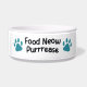 Food Neow Purrrease, teal cat pawprints food now please design.