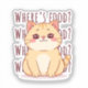 Chubby ginger cat looking hungry, with the text “Where’s food?”.