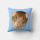 This awesome pillow features a cute photograph of an adorable little brown and white pet dumbo rat who is eating a treat and she certainly enjoys her tasty treats.
