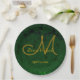 Hunter Green Gold Wedding Reception Monogram Paper Plate