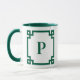 Hunter Green Greek Key Border Monogram Mug