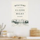 Welcome guests to your rustic, woodland or mountain wedding with our Mountain Sketch poster, featuring a sketched illustration of mountain peaks, pine trees, and a flowing river. Add your names, wedding date and custom welcome text using the fields provided.