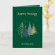 Hunter Green with 4 graphic Christmas trees in green pink and gold Christmas Card is stylish with a holiday feel. Each tree is individual and the colours are subtle and look great against the Christmas hunter green. The card can be personalized with your own photo, the year, your preferred holiday greeting and names. The card also coordinates with a range of Holiday Party stationary and party supplies.