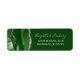 Le bord gauche de cette élégante étiquette d'adresse de retour faire-part de mariage moderne comporte une bordure d'aquarelle vert chasseur ornée d'une parties scintillant en faux argent. Le texte personnalisable combine écriture gris argent et polices de cuivre sur un arrière - plan vert chasseur.