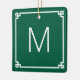 Hunter Green White Greek Key Border Monogram Photo Ceramic Ornament