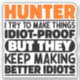 Funny Hunter Sayings "Hunter I Try To Make Things Idiot Proof But They Keep Making Better Idiots". Grab this Funny Hunter design as a funny gifts for an awesome mom, dad or friend.