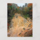 A waterfall of muddy water plunges over rocks amongst Fall trees.