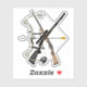 14" x 14" Custom-Cut Vinyl Stickers. Hunting Illustration: Bow and arrow, shotgun, muzzleloader. Perfect vinyl sticker for yourself, or the outdoor sportsmen in your life. This sticker features the weapons for all three seasons of hunting: archery, shotgun, and black powder.