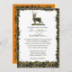 Hunting Camouflage wedding invitations - the front design features a deer (buck) silhouette with leaves and branches boarder. The designs are a woods camouflage with the text in a hunting green on top of a changeable white background. The back design is a camouflage with a buck doe heart and leaves around the boarder cut out, on top of a changeable hunting orange background. The paper by default is set to basic invitation stock, but can be changed by clicking 'choose your style' then using the Paper drop down box pick one of the options. Each invitation comes with a white envelope. To change the font, font size, or font colour, click the customize button below the Hunting Camouflage invitation. Note you may have to customize it if certain wording is too long and so it fits the design better. If your satisfied with the font setup, you can use the personalize feature to change the demonstration information to your personal details. Clicking the small images of the front/back of the card with change to that side so it can be altered. When done check the information you applied is correct and that you have no spelling errors on both sides of the card.