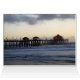 Surf lourd le long du rivage à Huntington Beach. A l'intérieur de la carte, on a vue sur la jetée. Au dos se trouvent les drapeaux américains, californiens et Huntington Beach qui flottent dans le vent. Vous pouvez ajouter votre propre texte aux quatre côtés de la carte.