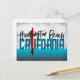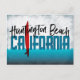 Huntington Beach California surfing design. A red surfboard with blue and turquoise text - typography surfer theme.