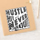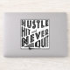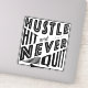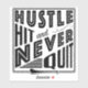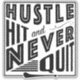 Big bold design for hurling and camogie fans and players! With the words: Hustle Hit And Never Quit and an image of a hurl / camán.