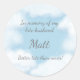 This morbidly funny sticker has a scene of heavenly blue sky, dreamy clouds, sparking stars and the words "In Memory of my late husband [insert name] Better late than never!" Perfect for those who waited a long time for a partner.