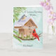 This hand-painted watercolor features a charming birdhouse adorned with a Happy Birthday banner, as a tufted titmouse and a cardinal stop by on a crisp January winter day. Soft seasonal details and gentle colors create a warm, thoughtful scene, making it a lovely birthday piece for husband who celebrates in January.