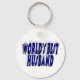 Key chain with World's Best Husband in 3D dark blue text. Round and square key chains available in several sizes.