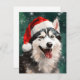 Colourful and joyful Christmas design with a Husky wearing a Santa hat.