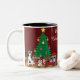 This adorable mug has a mommy husky playing with her puppies in the presents next to the Christmas tree on one side. As it wraps around it says Merry Christmas and on the other side it has two more huskies curled up next to a warm and inviting fire.