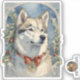 A husky poses for his Christmas portrait. This sticker is suitable for sizes 'tiny' to 'large.' Stick all over the place -- on gifts, cards, scrapbooks, phones, planners, water bottles, car windows, dog bowls, and use in bullet journals. Makes a great extra little gift for a husky owner too.