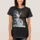 Husky dog and young white dragon leaving the winter castle to go out on an adventure.