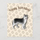 Husky Happy Birthday dog footprint Editable Postcard