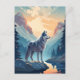 Colourful Art with a Husky in the snowy mountains during sunset.