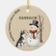 A adorable watercolor husky puppy and snowman makes these custom Christmas ornaments a heart warming keepsake gift. Easily customize to make a special gift this Christmas.