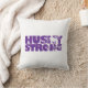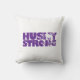 Cet oreiller à accent est montré avec une impression Husky Strong. Les couleurs sont violettes et blanches. Customisez cet objet ou achetez tel quel. Impression sous licence