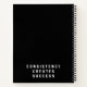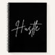 This minimalist black and white motivational notebook features a bold handwritten “Hustle” design on the front cover and a powerful reminder on the back: