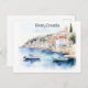 Check out this colourful vintage travel watercolor artwork on a postcard of the city of Hvar Croatia. Great souvenir for every visitor and tourist of the croatian city on the adria coast.