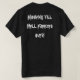 black shirt with HXC on the front (hardcore music symbol) in gatekeeper font to add a dark touch, on the back states (in the same font) Moshing till Hell freezes over...truly for those hardcore music lovers who wish to express their love for the music and dance styles...