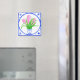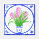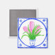 A square fridge magnet with a handpainted 'tile' design of a pot of pink hyacinths. (See also matching greeting card and other gifts.)