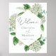 Welcome guests to your wedding with this beautiful poster, featuring watercolor hydrangea, eucalyptus and gold frame. Add the couple's names, and wedding date using the fields provided.