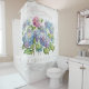 If you love hydrangeas, you'll certainly enjoy the lovely floral art on this shower curtain. Blooming hydrangeas are shown in delightful shades from pink to blue to lavender, with a wood board texture background. Personalize the two first names above and the last name below to your own.