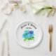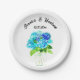 Hydrangea floral, boho, blue, simple, calligraphy, watercolor painting Wedding paper plates. Blue floral design. Perfect For Wedding party decor. Please personalize it with your names and date.