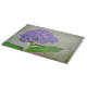 This glass cutting board features a lavender hydrangea. These cutting boards can also be used as a decorative table protector to place plants and other items on