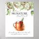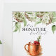 Celebrate your wedding in style with our Signature Cocktail Bar Signs, featuring a hand-painted watercolor green, white and antique hydrangeas and a Cranberry Moscow Mule. The words “Our Signature Cocktail” appear in a blend of elegant script and classic sans typography, blending modern design with timeless charm.