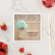 Elégante dentelle vintage et turquoise hydrangea mason serviettes en papier pour mariages, fiançailles, douches nuptiales. Terminé sur l'ancienne image arrière - plan en bois.