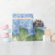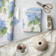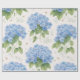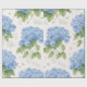 Elegant hydrangea floral wrapping paper featuring soft blue blooms on a warm ivory background. A timeless choice for birthdays, weddings, garden parties, and refined gifting.