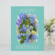 ELEGANT BLUE WHITE AND GOLD HYDRANGEA WITH MINT GREEN LEAVES AND GOLD HEARTS HAPPY BIRTHDAY CARD YOU CAN TYPE A CUSTOM MESSAGE OR LEAVE BLANK AND HAND WRIGHT A MESSAGE FOR THAT PERSONAL TOUCH
