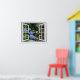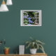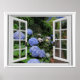 Pretty Hydrangea garden view, fake window garden scene, for a windowless office. Very realistic landscape optical illusion poster that would look great on an office or study wall.