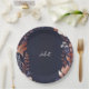 Hydrangea Metallic Pure Navy Blue Bridal Shower Paper Plate