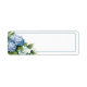 This return address label is shown in basic white with a lovely blue hydrangea art print.